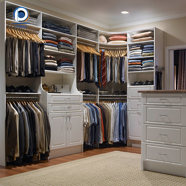 Curved design home wardrobe white wooden bedroom closet