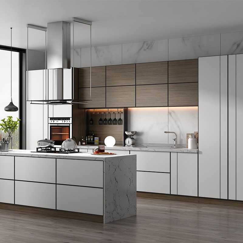 Custom Design Luxury Kitchen Furniture White High Gloss Lacquer Modern Kitchen Cabinets with Island