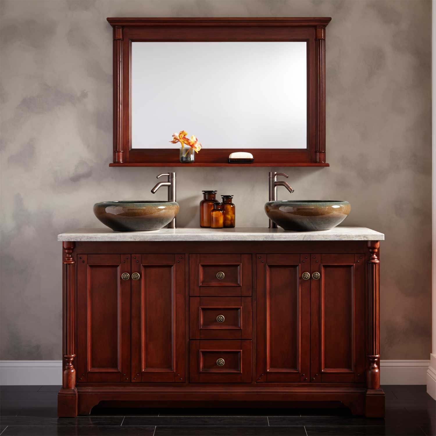 Mirror: Face-framed Mirror. Medicine cabinet is available.